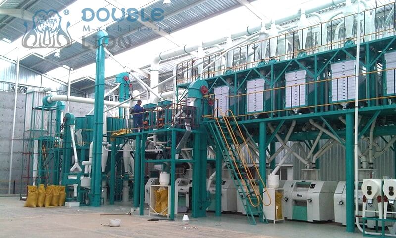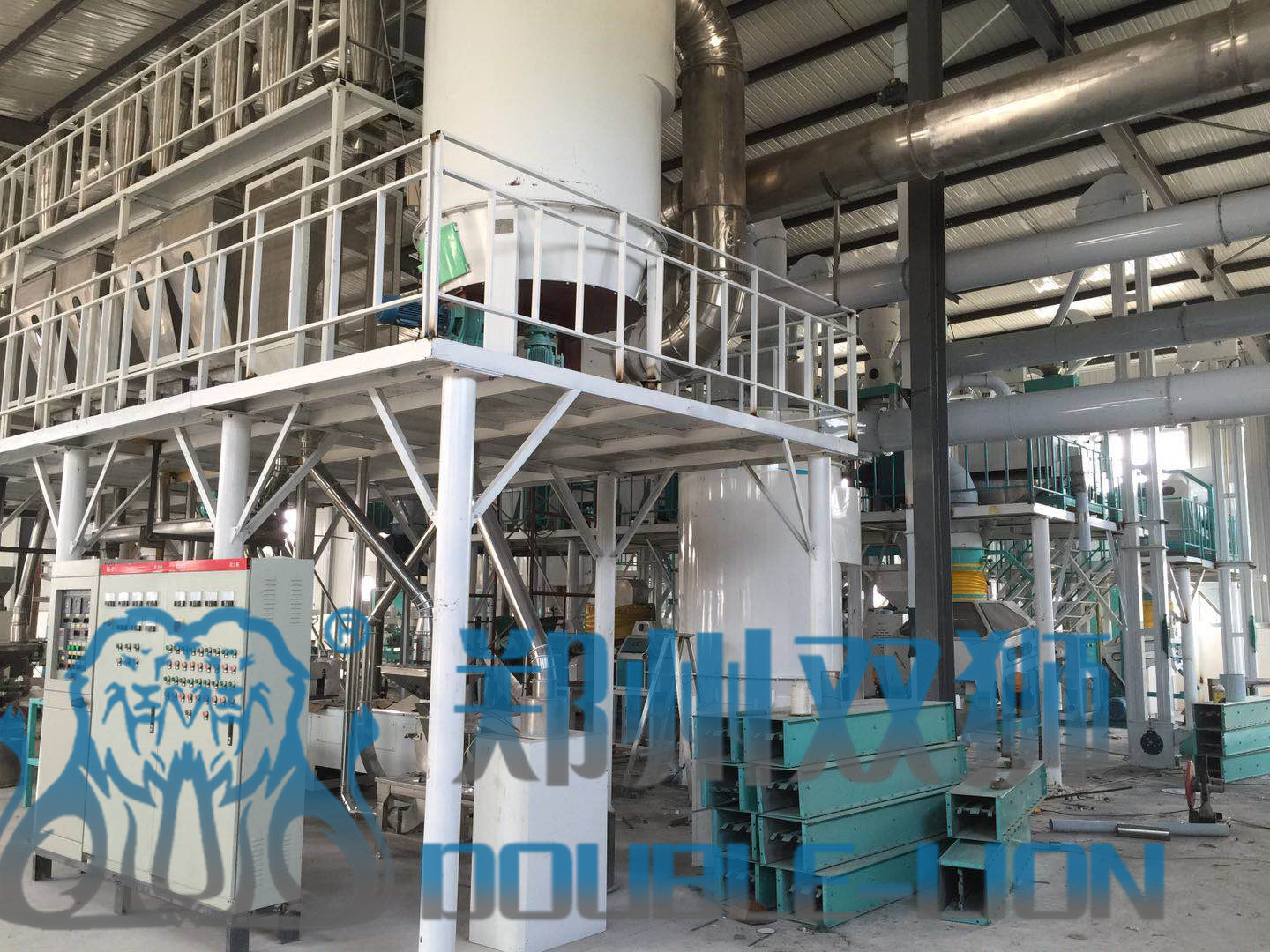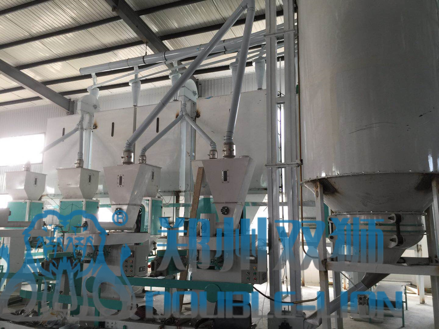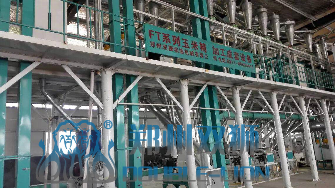 大型玉米加工设备主要由斗式提升机、振动筛、磁力分选器、低压风机、去石机、砂辊脱皮机、斗式提升机、筒仓、砂辊脱皮机、斗式提升机、双风脱皮抛光机、斗式提升机、自衡振动分级筛机、比重提胚机,磨粒机、提升机、圆筒抛光机、提升机、圆筒抛光机、低压风机、悬浮筛、提升机、分级平筛、吸风分离器等设备组成。